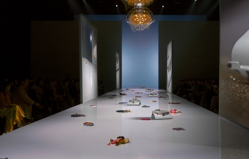 ‘더클린워크’에서는 삼성만의 특허 출원한 기술로 강력해진 최대 280와트의 흡입력·3970mAh의 대용량 배터리로 런웨이 바닥의 금빛 부스러기들을 강력 흡입한다.