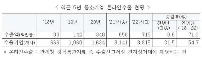 중소벤처기업부는 그간 중소기업의 온라인수출 지원을 위해 글로벌플랫폼 입점, 온라인 마케팅 지원, 물류·통관 지원, 해외향 자사 온라인몰 구축 등 다양한 프로그램을 운영해왔다.