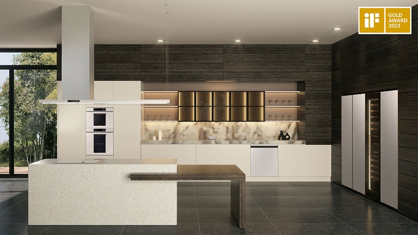 ‘비스포크 인피니트 라인’은 냉장고·와인셀러·오븐· 후드로 구성된 주방 가전 조합으로, 알루미늄·스테인리스·세라믹 등의 차별화된 소재를 적용해 프리미엄 라이프스타일 감성의 일체감 있는 디자인을 제공했다.