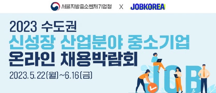 잡코리아(대표이사 윤현준)가 서울지방중소벤처기업청(청장 김영권)이 주최하는 ‘2023 수도권 신성장 산업분야 중소기업 온라인 채용박람회’를 내달 16일까지 개최한다.