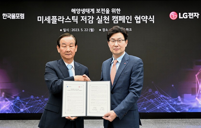LG전자가 한국물포럼(총재 곽결호)과 손잡고 미세플라스틱 배출을 줄이기에 나섰다.