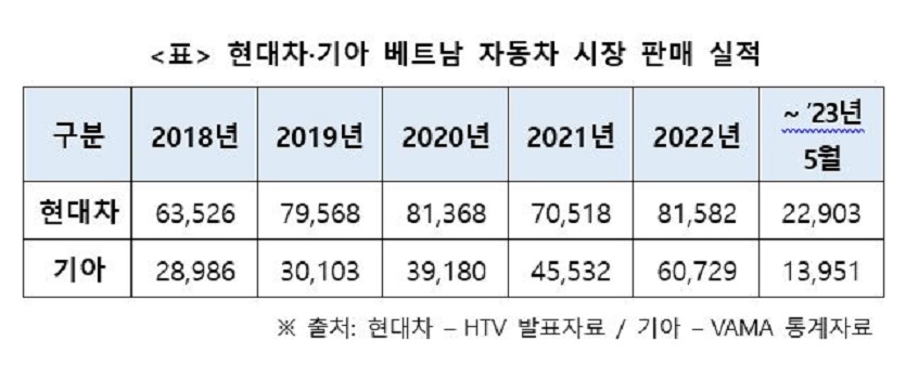 현대차·기아는 하반기에도 생산 능력 확대, 판매 차종 다변화 등 점유율 확대를 위한 지속적인 노력을 통해 올해 베트남 자동차 시장에서 의미 있는 성과를 달성한다는 방침이다.