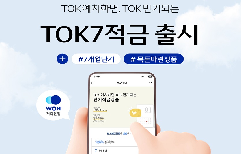 우리금융저축은행(대표이사 전상욱)은 연 5% 금리를 제공하는 단기 정기적금인 ‘TOK7적금’을 출시하고, ‘우리WON꿀머니’를 경품으로 지급하는 고객 이벤트를 진행한다.