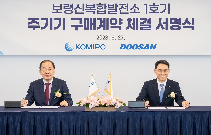 두산에너빌리티는 한국중부발전과 2800억원 규모 보령신복합발전소 주기기 공급계약을 체결했다고 29일 밝혔다.