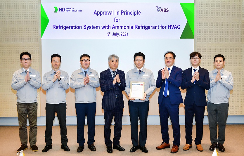 HD현대중공업은 5일 울산 본사에서 미국선급협회로부터 ‘암모니아 냉매 HVAC 시스템’에 대한 기본승인(AIP) 인증을 획득했다.