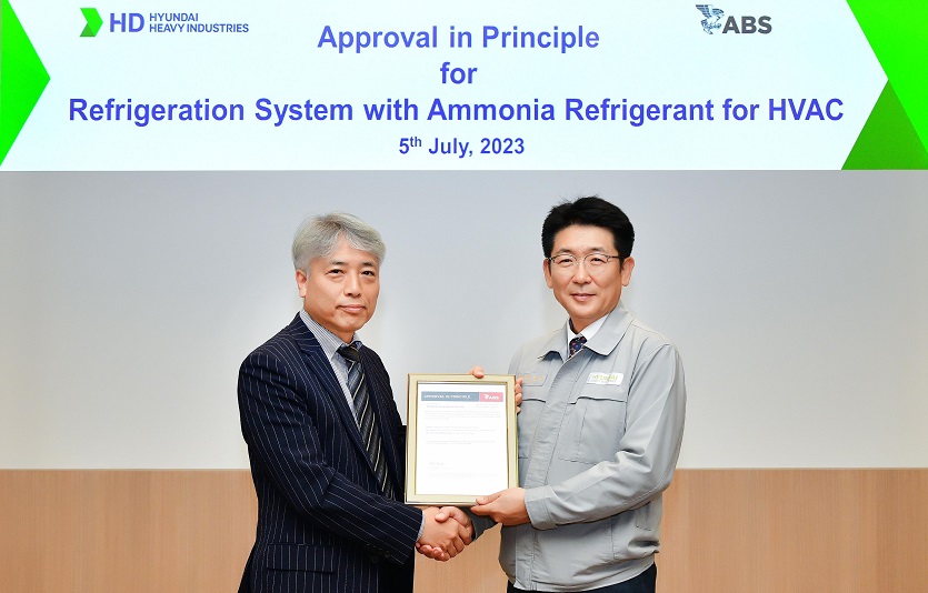 HD현대중공업은 올해 새롭게 제정된 ABS의 암모니아 냉매 적용 규정을 토대로 시스템 회로도 구성 및 배치도면 작성 등을 통해 암모니아 냉매 HVAC 시스템을 개발하고, ABS는 시스템의 법적·기술적 검토를 수행했다.