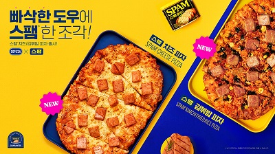 신제품은 빠삭한 도우 위에 스팸과 치즈를 가득 올려 풍미를 더한 ‘스팸치즈피자’와 세계 최초로 고소한 김가루가 뿌려진 스팸 김치볶음밥을 피자로 구현한 신박한 만남의 ‘스팸김볶밥피자’ 등 2종이다.