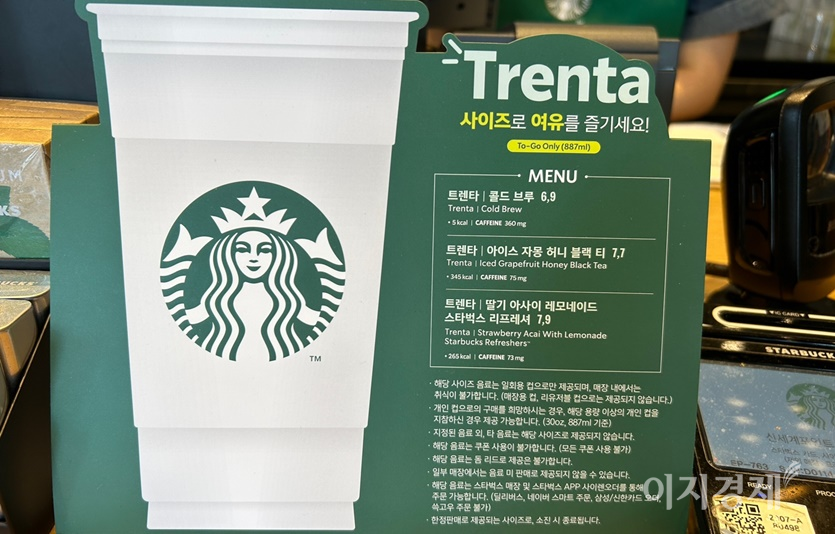 스타벅스 코리아의 ‘트렌타’ 사이즈 출시는 스타벅스 아시아지역에서 우리나라가 유일하게 운영되는 국가라는 데 특별한 의미를 갖는다. 트렌타 사이즈는 한정기간 제공 후 고객 반응과 의견을 토대로 확대 판매를 결정한다.