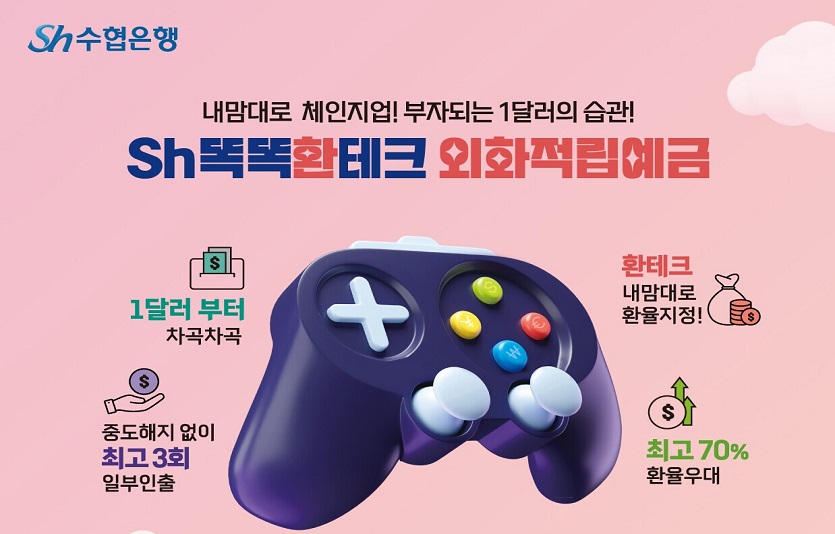 Sh수협은행은 이와 함께 환테크(환전+재테크)와 소액자금 적립에 관심이 있는 고객들을 위한 ‘Sh똑똑환테크 외화적립예금’도 이달 출시했다.