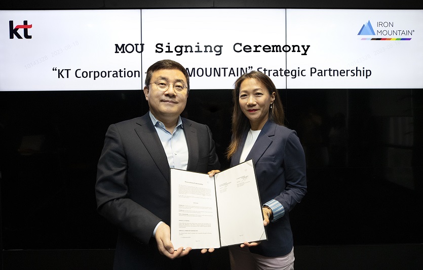 [이지경제=윤현옥 기자] KT가 글로벌 문서 위탁관리 기업인 아이언마운틴과 국내외 사업 및 공인전자문서 생태계 확장을 위한 전략적 업무협약을 체결했다고 21일 밝혔다. 아이언마운틴은 글로벌 문서관리 위탁관리 1위 사업자로 54개국에서 사업을 진행하고 있다.