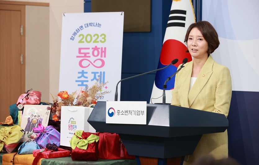 중소벤처기업부 이영 장관은 23일 서울청사 별관 브리핑룸에서 황금녘 동행축제 추진계획을 발표했다.