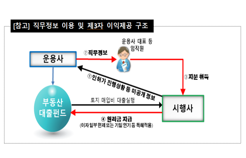 이에 따라 발생한 펀드의 손해는 고스란히 펀드 가입자들에게 돌아갔다. 그 사이 펀드 운용사 대표를 비롯한 임직원들은 해당 시행사의 지분을 취득한 뒤 지분 매각 차익을 누렸다.