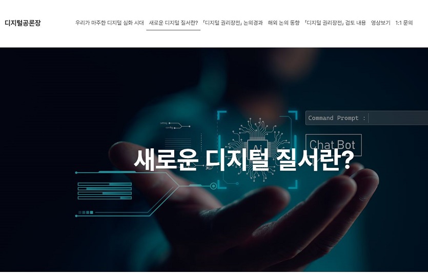 디지털 공론장 웹사이트는 디지털 권리장전과 새로운 디지털 질서에 대해 국민들이 알기 쉽게 소개하고, 각종 자료를 제공해 새로운 디지털 질서 정립 과정에서 충분한 논의와 공감대 형성을 지원하기 위한 온라인 사회적 공론화 플랫폼이다.