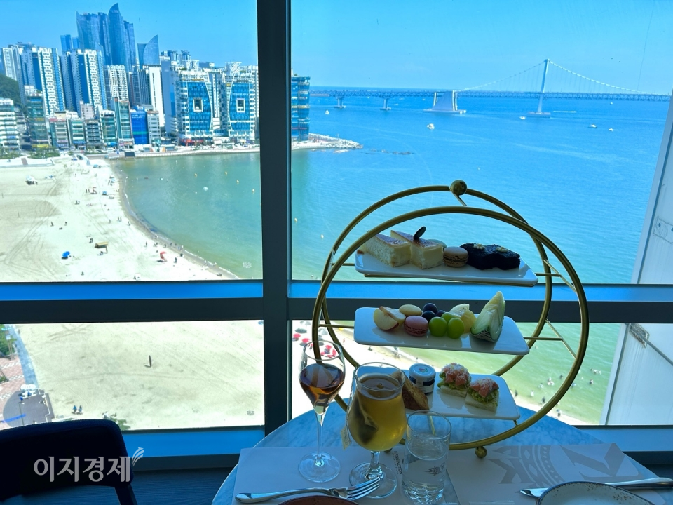 이 곳이 유명해진 이유는 바로 광안리 바다를 배경으로 애프터눈티세트를 먹을 수 있어서다. 심지어 샴페인과 팥빙수가 포함된 가격이라는 점이 더욱 소비자를 이끌리게 만든다. 타 호텔 브랜드보다 저렴하게 다양한 구성으로 나오는 애프터눈티세트를 즐길 수 있다. 애프터눈티세트는 오후 1시부터 5시까지만 주문 가능하며, 사전 예약이 필요하다.