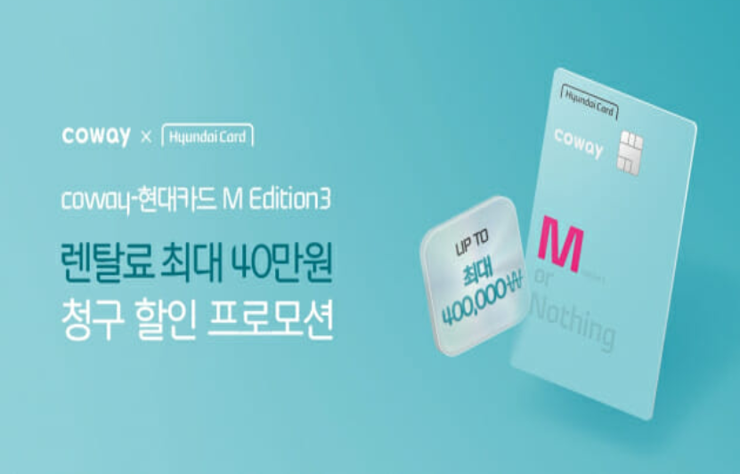 코웨이는 현대카드와 손잡고 고객들이 보다 합리적인 비용으로 코웨이 제품과 서비스를 이용할 수 있도록 'Coway-현대카드M Edition3’ 이벤트를 마련했다고 7일 밝혔다.