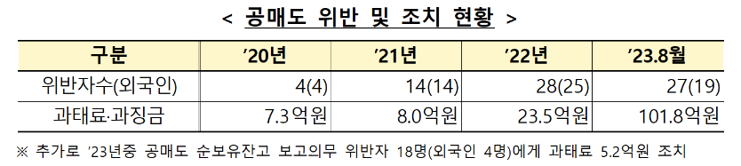 금감원의 단속과 제재 강화로 공매도 관련 위반과 과태료·과징금 규모도 역대 최대를 기록하고 있다. 증선위는 올해 1~8월 자본시장법 관련 공매도 규제 위반 혐의로 27개 금융사에 101억8000만원의 과태료와 과징금을 부과했다.