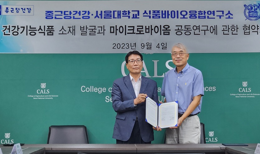 종근당건강은 최근 서울대 식품바이오융합연구소와 ‘건강기능성식품 소재 발굴과 마이크로바이옴 공동연구를 위한 업무협약’을 체결했다고 8일 밝혔다.