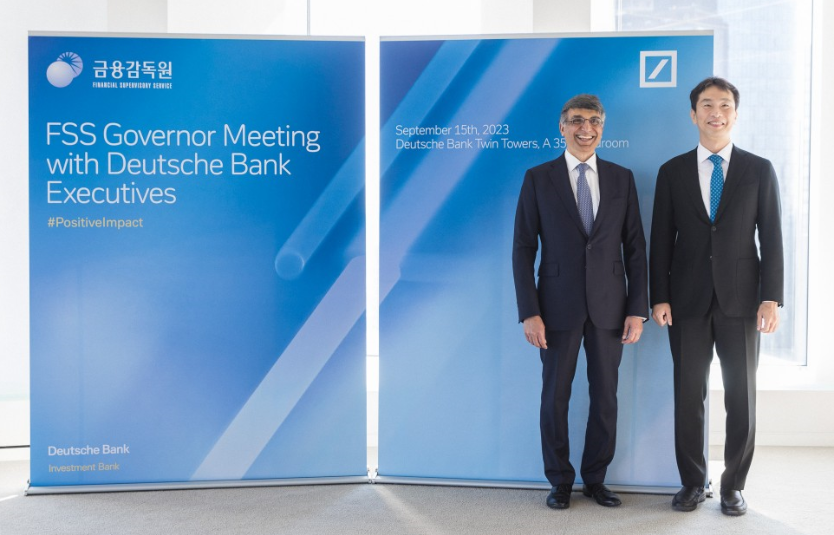 [이지경제=정석규 기자] 이복현 금융감독원장이 지난 15일 독일 프랑크푸르트에 위치한 도이치은행 본사를 찾아 람 나약(Ram Nayak) 투자은행 부문 글로벌 공동대표 등 글로벌 경영진과 면담을 가졌다.