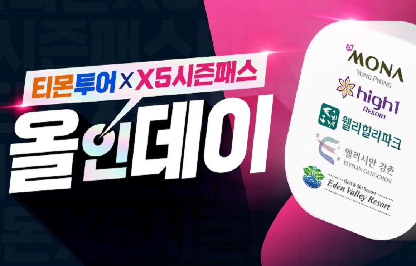 [이지경제=윤현옥 기자] 티몬이 전국 인기 스키장 5곳을 마음껏 즐길 수 있는 X5 시즌패스를 단독 판매한다.