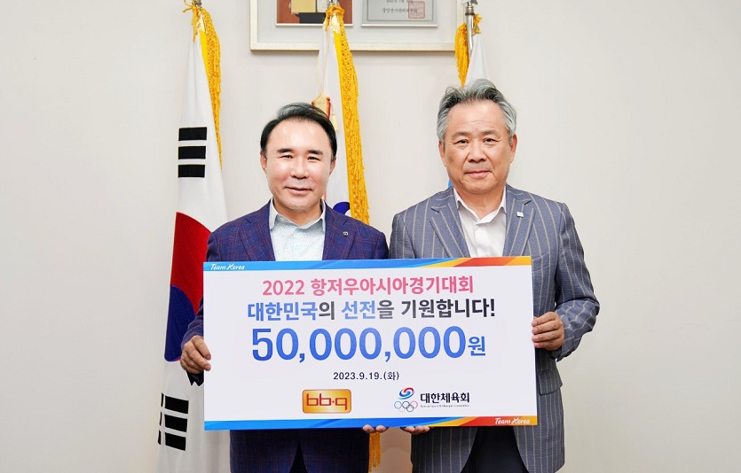 [이지경제=윤현옥 기자] BBQ가 제19회 항저우 아시안게임에 출전하는 대한민국 선수단의 선전을 기원하며 격려금을 전달했다.