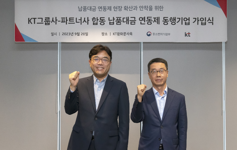 이 자리에서 납품대금 연동제를 총괄하는 원영준 중소벤처기업부 소상공인정책실장은 “중소기업벤처부는 KT에서 준비한 합동 가입이 2차 수탁사까지 납품대금 연동제를 조기 확산하는데 좋은 계기가 될 것으로 기대하고 있다”고 말했다.