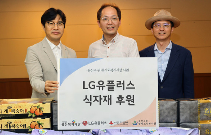 LG유플러스는 용산복지재단과 수해지역 농산물 소비 촉진에 적극 동참하기 위해 이번 기부를 추진했다. 용산복지재단은 LG유플러스 기부금을 활용해 수해지역인 충남·충북·경북 농협에서 농산물을 구매한 후 청파노인복지관에 전달했다.