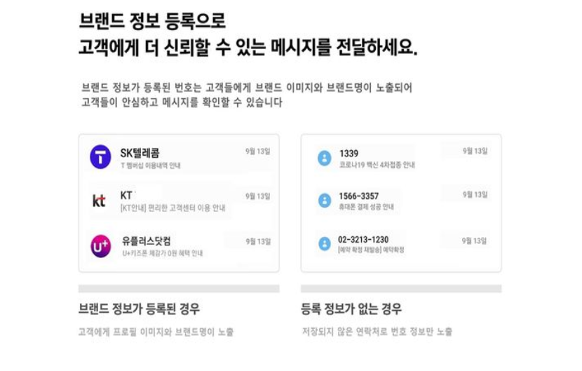 이통3사가 운영하는 브랜드 등록 지원센터에서는 기업이 발송하는 메시지에 전화번호 대신 각 기업이 브랜드 프로필로 등록한 로고나 브랜드 이미지 등을 삽입하는 방법과 절차에 대한 설명을 안내 받을 수 있다.