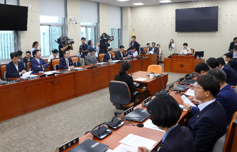 백 위원장은 국정감사 증인 채택 관련 회의에서 "금융위 국감이 11일이라 오늘까지 증인 채택을 해야 출석을 강제할 수 있기 때문에 의결하지만 공정위나 다른 국감까지는 여유가 있다"며 "금융권의 내부통제 문제가 가장 큰 관심 부분인데 이번 금융위에서 관련된 증인들은 현재 지금 다 빠져 있는 상태니 여야 간사들끼리 추가적인 논의를 해주길 바란다"고 주문했다.