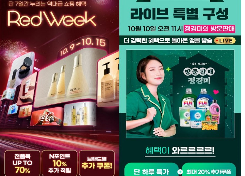 [이지경제=윤현옥 기자] LG생활건강이 뷰티, 생활용품, 음료 제품을 저렴한 가격으로 네이버에서 판매하는 '레드위크' 행사를 시작했다고 10일 밝혔다.