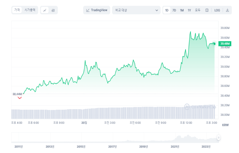 비트코인, 20일 기준 4000만원 임박…리플 소송 취하에 강보합 움직임
