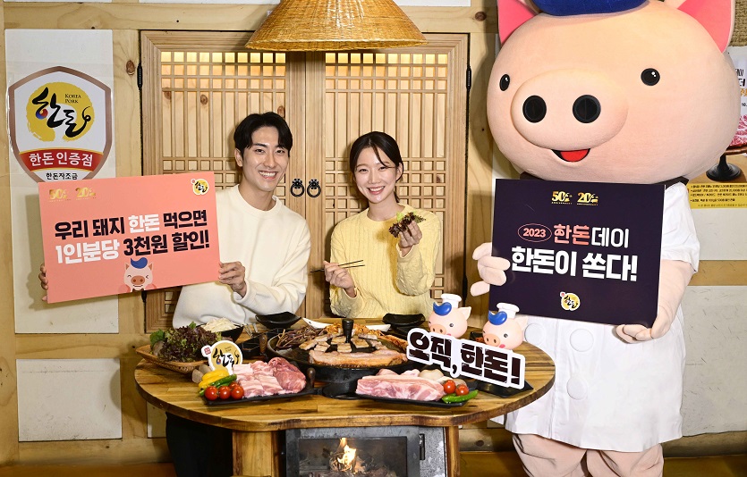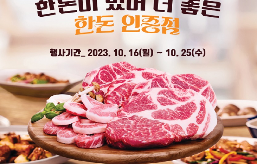 한돈자조금관리위원회(이하 한돈자조금)는 2023 한돈데이를 맞아 이달 25일까지 열흘 간 전국 주요 한돈인증점에서 우리돼지 한돈 할인 이벤트를 진행중이다.