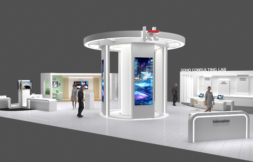 전시관 내부는 KT의 인공지능(AI), 빅데이터(BigData) 등 핵심 역량을 토대로 개인·소상공인·기업고객을 위한 디지털 패러다임의 전환을 이끌어내는 모습을 체감할 수 있도록 방사형 공간으로 구성됐다.