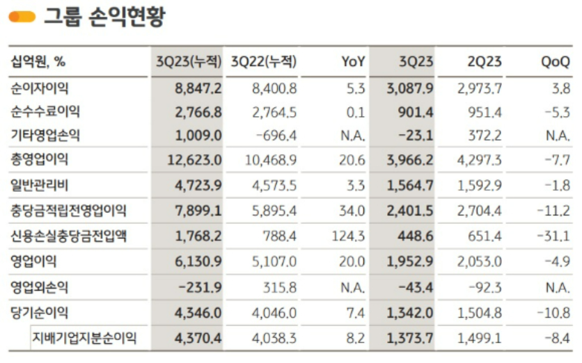 3분기 순익만 1조3737억원으로 컨센서스 상회