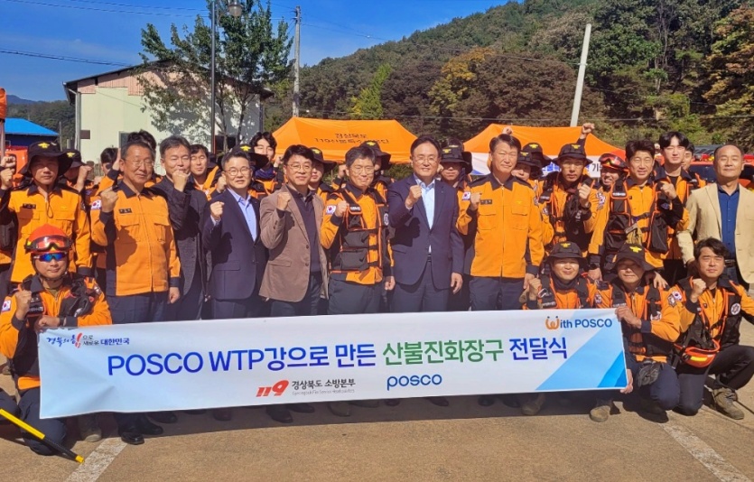 [이지경제=최준 기자] 포스코가 지난 18일 자사의 WTP (World Top Premium) 제품으로 제작한 프리미엄 산불진화장구 50세트를 경북소방본부 119산불특수대응단에 전달했다고 26일 밝혔다.