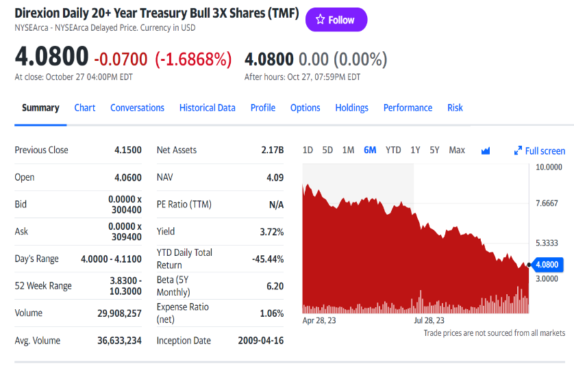 해당 상품은 미국 20년 이상 장기 국채를 3배로 추종하는 ETF로 국채 금리가 낮아질수록 이익을 얻는 상품이다.