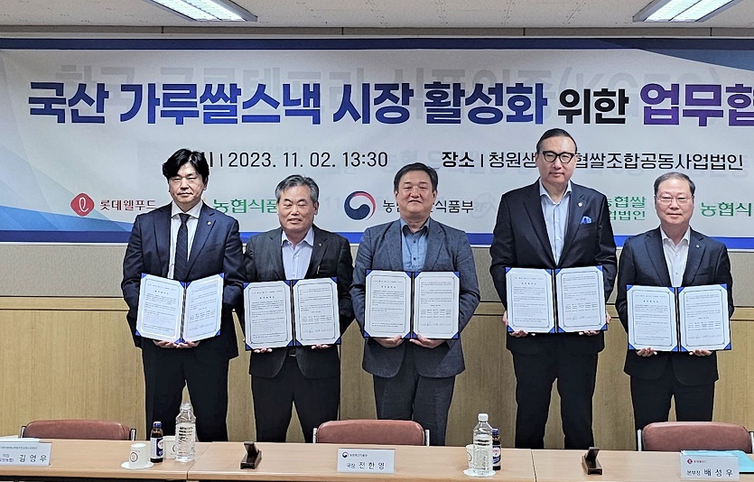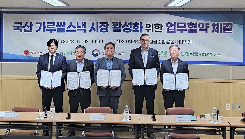 [이지경제=윤현옥 기자] 농협과, 농식품부, 롯데가 국산 쌀을 이용한 스낵제품 개발을 위해 협력한다.