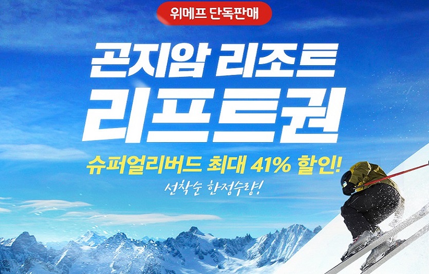 위메프 관계자는 “곤지암은 서울에서 가장 가까운 곳에 있어 수도권 최대 규모의 스키장으로 많은 스키어, 스노어보더에게 인기”라며 “가장 저렴한 티켓으로 합리적인 가격에 겨울 레포츠를 즐기시길 바란다“고 말했다.