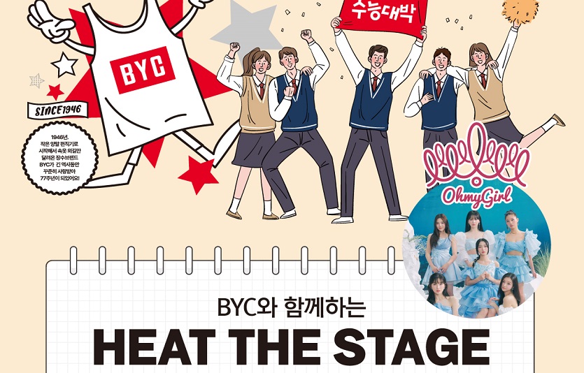 BYC는 사연을 통해 선정된 1개 고등학교를 방문해 BYC 기능성 발열웨어 보디히트를 증정하고 BYC 전속모델 아린이 속한 걸그룹 오마이걸을 초청해 응원 행사를 진행한다.