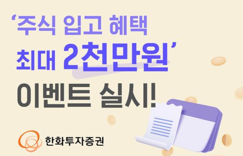 [이지경제=정석규 기자] 한화투자증권은 내달 29일까지 '주식 입고 혜택 최대 2000만원' 이벤트를 실시한다고 8일 밝혔다.