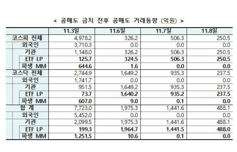 이는 개인투자자들의 요구에서 비롯된 움직임으로 앞서 금융위가 지난 6일부터 일반 투자자의 공매도를 금지한 데 이어 시장조성자(MM)와 유동성공급자(LP)의 공매도도 도마 위에 오른 것이다.