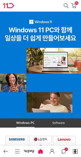 11번가는 ‘마이크로소프트 브랜드관’을 통해 MS의 윈도우(Windows), 오피스(Office) 등 정품 소프트웨어와 삼성, LG, ASUS 등 다양한 브랜드의 윈도우 PC를 한곳에 모아 판매한다. 뿐만 아니라 최신 버전 윈도우, 오피스 활용 팁 및 MS의 보안솔루션 소개 등 유용한 활용 정보들을 함께 전달하게 된다.