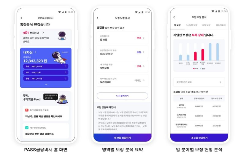 PASS금융비서 보험분석 서비스는 고객이 연결한 보험 관련 데이터를 기반으로 불필요한 보험을 줄이거나 반드시 필요한 보험을 AI로 분석해 서비스를 제공한다.
