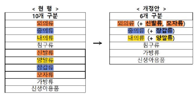 유아용 섬유제품의 모델 구분 단순화 요구에 따라 동일모델 인정 범위가 확대되도록 제품 분류를 단순화했다. 이에 따르면 기존 10개의 분류기준을 6개로 통합됐다.