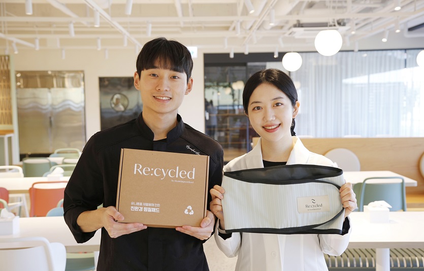 이 친환경 찜질패드는 지난해 현대그린푸드가 폐페트병을 업사이클해 만든 앞치마·가운 등 친환경 유니폼을 다시 한 번 업사이클링해 제작한 것이 특징이다. 이번 찜질패드 제작에는 유니폼 제작 과정에서 버려졌던 자투리 원단도 활용됐다.