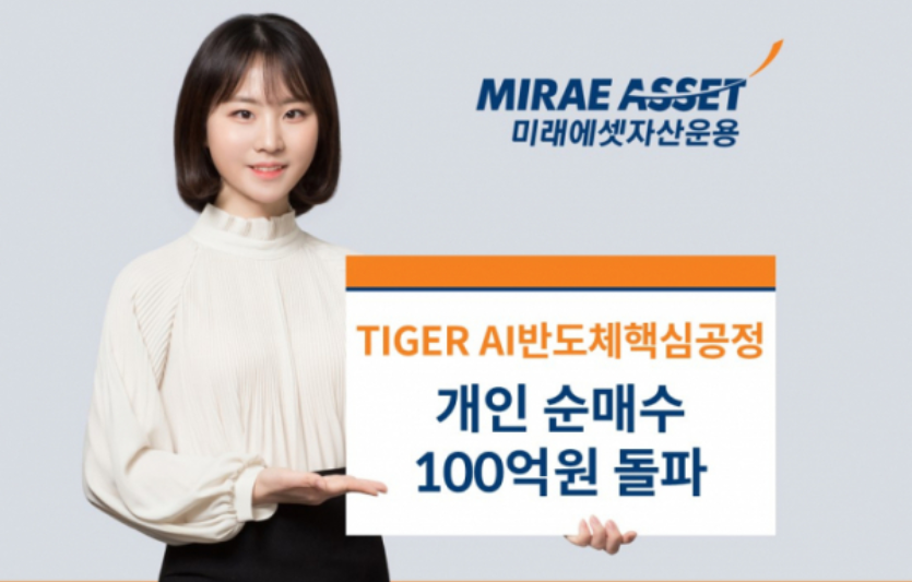 [이지경제=정석규 기자] 미래에셋자산운용은 ‘TIGER AI반도체핵심공정 상장지수펀드(ETF)’가 상장 3일 만에 개인 누적 순매수 100억원을 돌파했다고 24일 밝혔다.