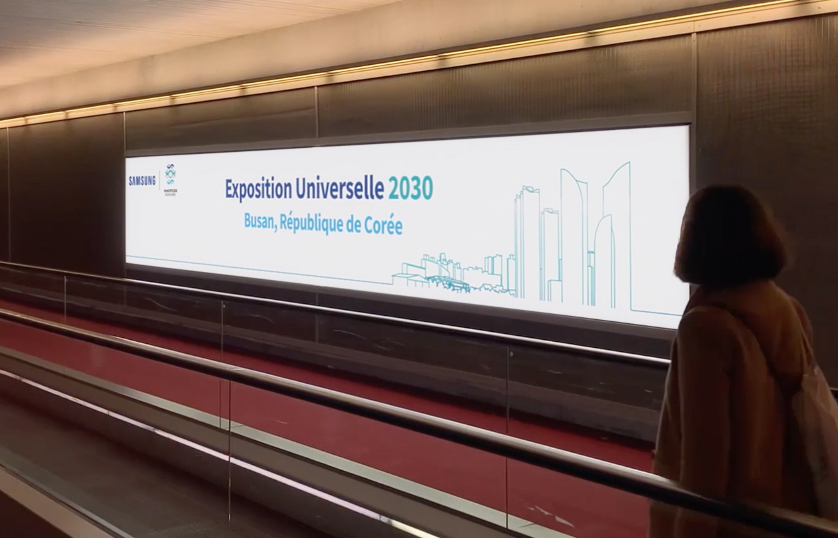 삼성전자는 국립 오페라 극장 '오페라 가르니에'의 대형 옥외광고에 '갤럭시 Z 플립5' 이미지와 함께 부산엑스포 로고를 함께 선보이고 있다. 또한 샤를드골 국제공항 입국장에서 14개 대형 광고판을 통해 부산엑스포 유치를 응원하는 광고를 집중적으로 실시하고 파리 내 주요 매장에서도 부산엑스포 홍보 영상을 상영해 왔다.