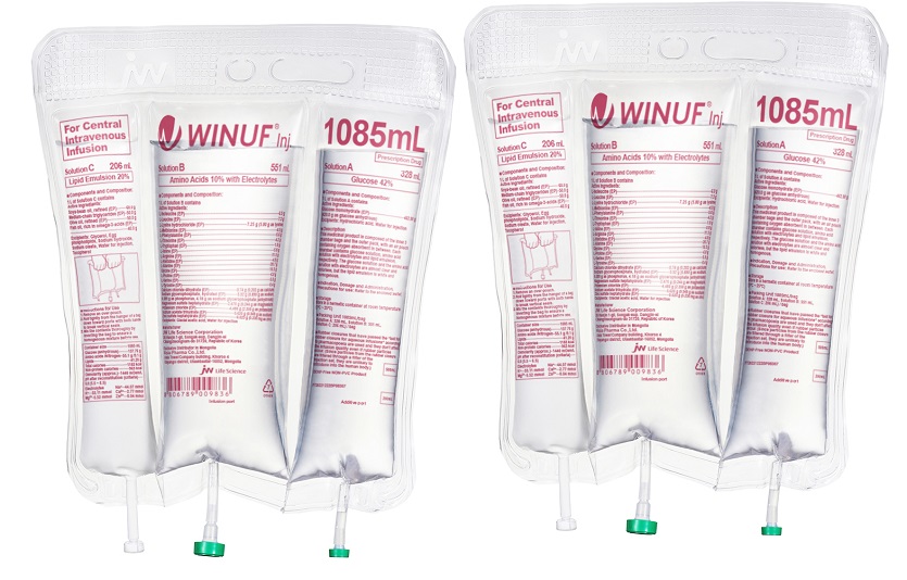 위너프는 JW생명과학이 개발한 종합영양수액제로, 하나의 용기를 3개의 체임버로 구분해 정제 어유(Fish oil)를 비롯한 지질 4종, 아미노산, 포도당 등 영양소를 간편하게 혼합해 사용하는 제품이다.