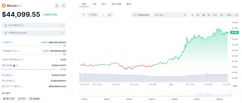 6일 4.4만 달러 선 돌파...올해 초 대비 150% 이상 상승