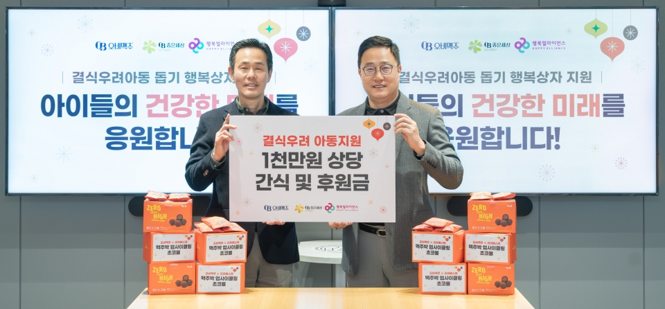 [이지경제=김선주 기자] 오비맥주가 연말을 맞아 취약계층 아동에게 행복상자를 전달한다. 오비맥주는 지난 6일 서울 강남구 삼성동 본사에서 결식우려아동 행복상자 지원 전달식을 열고 사회공헌 네트워크 행복얼라이언스에 1000만원 상당의 간식과 기부금을 기탁했다고 7일 밝혔다.