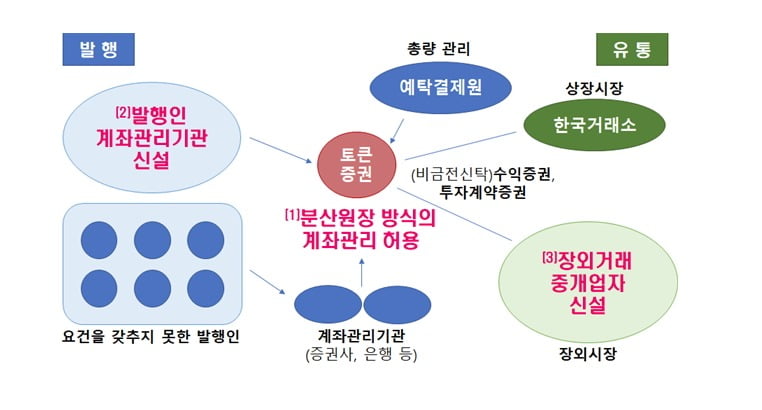 신종증권의 상장 시장은 기존 전자증권 방식으로 운영하는데 거래소는 현행 매매‧청산‧결제 인프라를 동일하게 활용할 예정이다. 분산원장의 처리속도에 한계가 있다는 이유에서다.